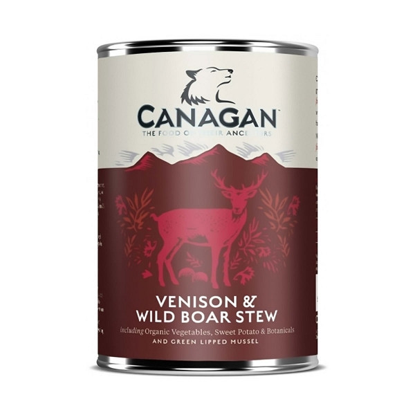 Canagan Venison&Wild Boar Stew je popolna vlažna hrana za pse, ki vsebuje sveže meso in predstavlja poln, okusen in hranljiv obrok za vašega psa.